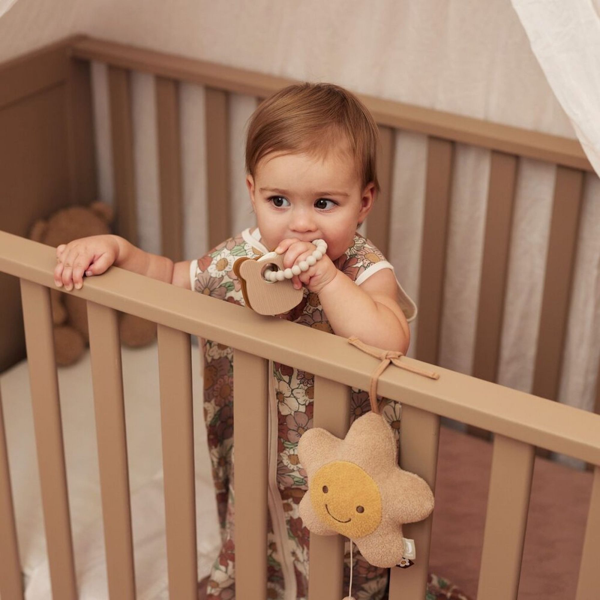 Cet anneau de dentition en silicone aux couleurs neutres est un jouet parfait pour les petits qui aiment mettre des choses en bouche. Il convient également très bien aux enfants qui font leurs dents. En forme de porte-clés, il sera idéal pour soulager les douleurs de votre bébé lors de ses poussées dentaires et il pourra s’amuser avec. Il contient deux têtes d’ourson et une clé. Sa petite taille vous permettra de pouvoir le transporter facilement partout.