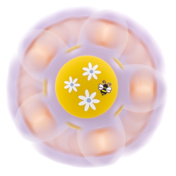 Duo de spinners en silicone souple, ludiques et sensoriels Décor marguerite au style printanier, couleurs douces et apaisantes Fixation par ventouse solide : s’utilise sur la chaise haute, dans la salle de bain, sur la vitre de voiture et autres surfaces lisses Parfait pour amuser et apaiser les enfants, à la maison comme en déplacement.