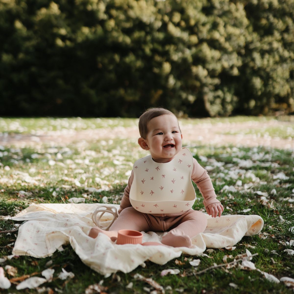 La collection de bavoirs en silicone de Mushie est amusante, intemporelle et colorée, dans des designs variés.