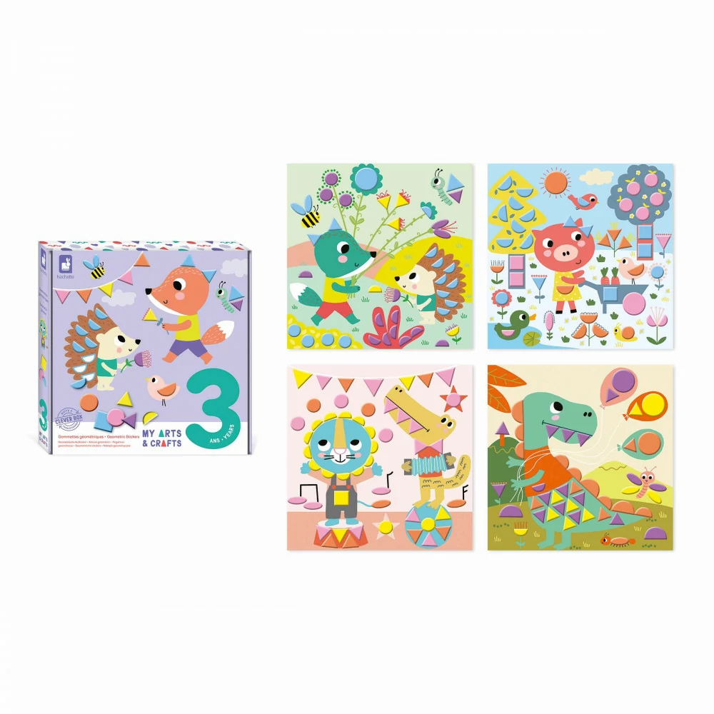 Les enfants à partir de 3 ans vont adorer s’amuser avec ces animaux rigolos qui leur proposent tout un tas d’activités gommettes ! Dans ce coffret créatif on retrouve 4 tableaux à décorer de gommettes géométriques en mousse. Parfait pour travailler la motricité fine tout en créant ! Malin la Clever Box, la boite se transforme en chevalet pour exposer les belles créations. À l’aide du livret d’instructions et des contours colorés des formes présentes sur les tableaux, il suffit de coller la gommette en mousse correspondante sur le bon emplacement. Environ 20 minutes sont nécessaires pour compléter un tableau. Ce coffret créatif fait partie de la gamme My Arts & Crafts qui présente des animaux tout mignons aux couleurs pastel et qui propose les premières activités de créations des plus petits.