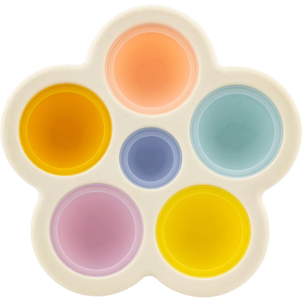 Jouet sensoriel en forme de marguerite, avec 6 dômes en silicone alimentaire 100 % sûr pour les enfants Chaque dôme peut être pressé pour un effet tactile apaisant et ludique, favorisant la motricité fine Les dômes portent différentes formes en relief (carré, rond, étoile, etc.) pour éveiller la curiosité et l’apprentissage sensoriel Design pastel doux et attrayant, adapté aux enfants et agréable à manipuler.