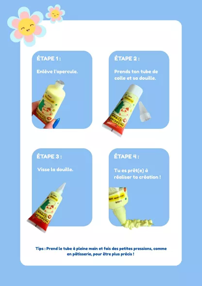 1️⃣ Appliquez la colle crème sur le support à l’aide de la douille.