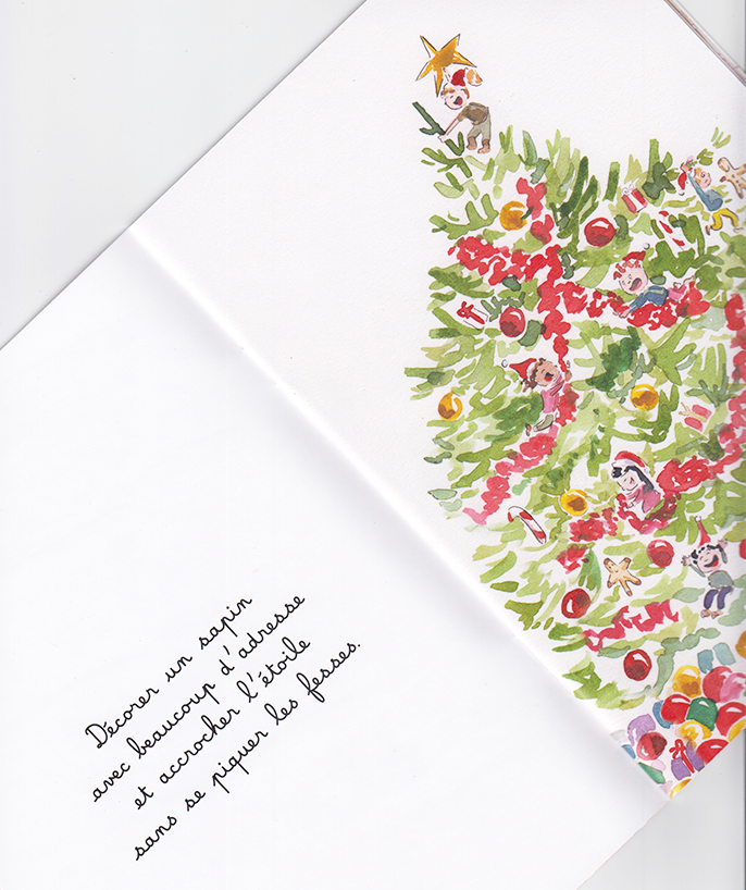 Voici, un petit catalogue illustrés des moments préférés des petits et grands enfants à Noël : Décorer un sapin avec beaucoup d’adresse et accrocher l’étoile sans se piquer les fesses, imaginer comment le Père Noël parvient à se glisser chez toi malgré son embonpoint…