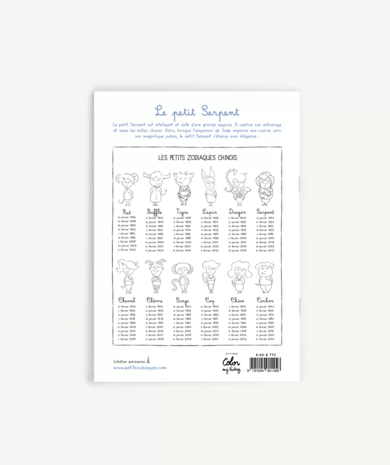Le petit Serpent est intelligent et doté d’une grande sagesse. Il captive son entourage et aime les belles choses. Alors, lorsque l’empereur de Jade organise une course vers son magnifique palais, le petit Serpent s’élance avec élégance…