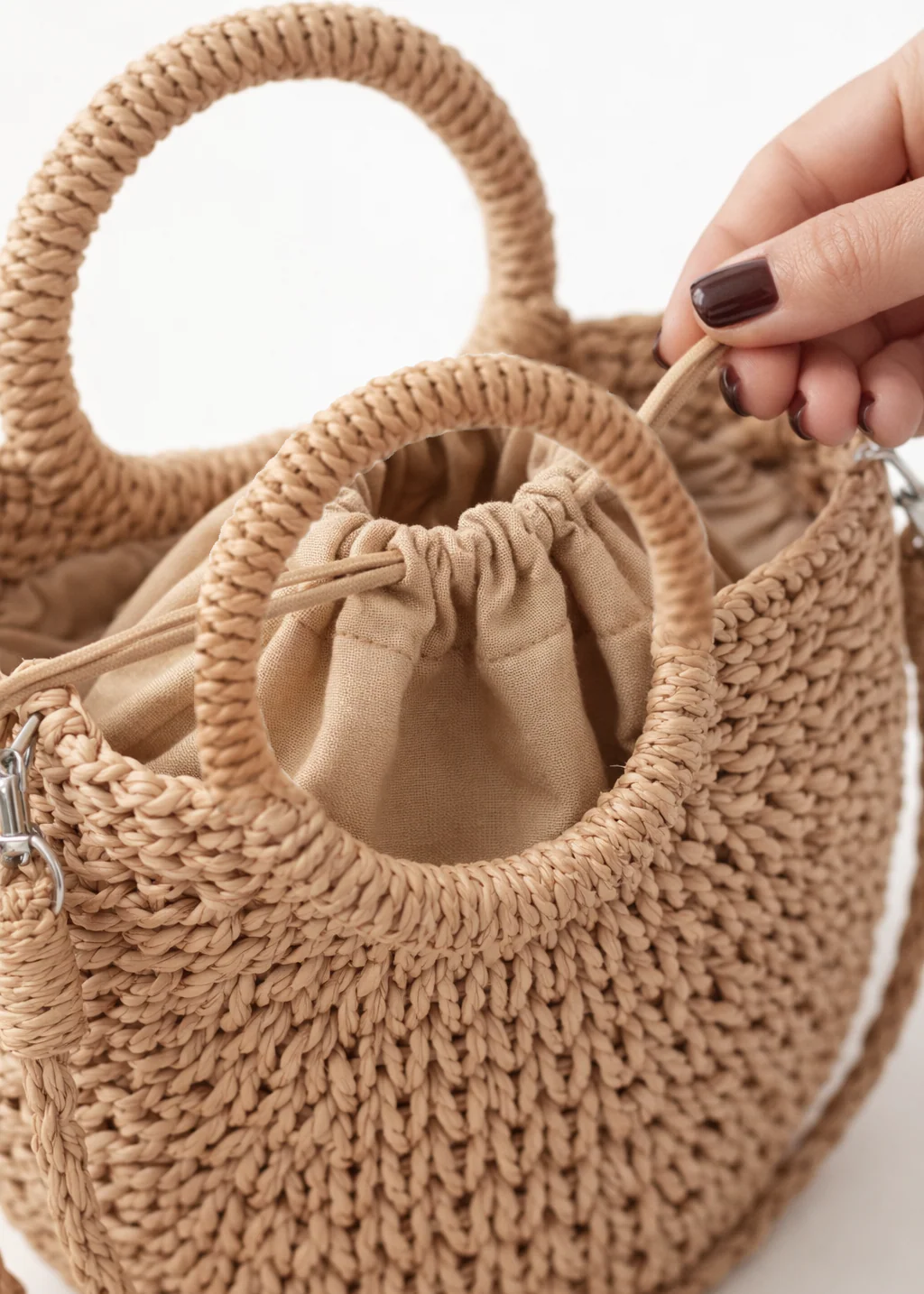 Sac bandoulière enfant en paille naturelle, léger et résistant, parfait pour un usage quotidien, les sorties ou les occasions spéciales.
