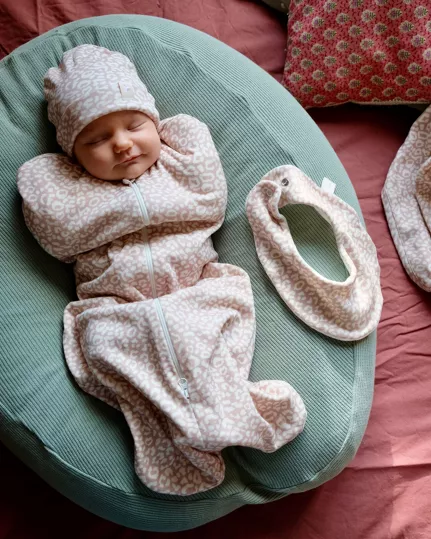 Dans l’optique de donner une seconde vie au coussin d’allaitement, cette housse a été conçue pour que vous puissiez poser votre bébé sans qu’il ne glisse entre les deux boudins.