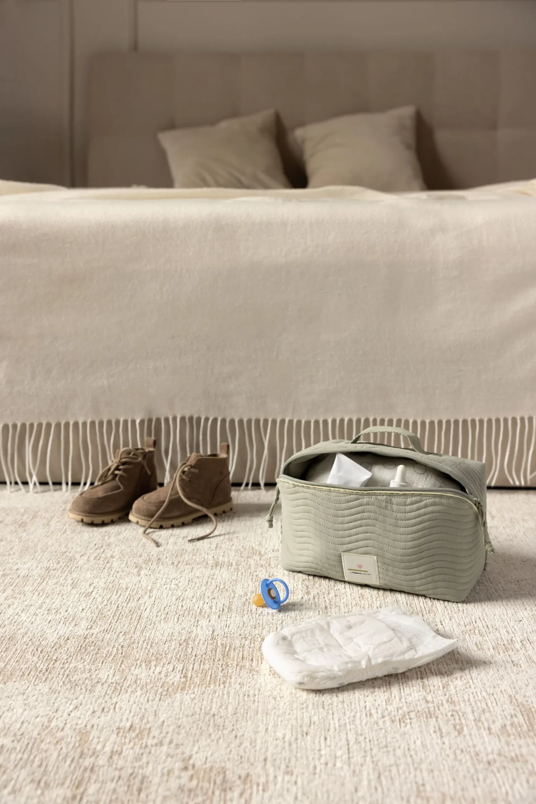 La station à langer mobile : Avec l’organiseur de table à langer flexible LÄSSIG, les parents ont toujours les essentiels du change à portée de main. Ce sac de rangement élégant trouve parfaitement sa place sur la table à langer et peut être emporté partout – fini les allers-retours pour tout ranger et sortir.