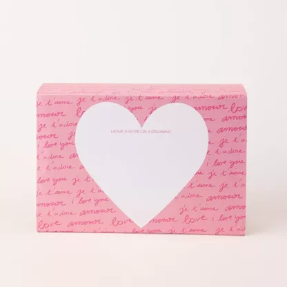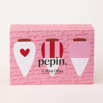 Chaque coffret contient trois mini ollas : 1 rayé rose et rouge, 1 coeur rouge et 1 rose pâle.