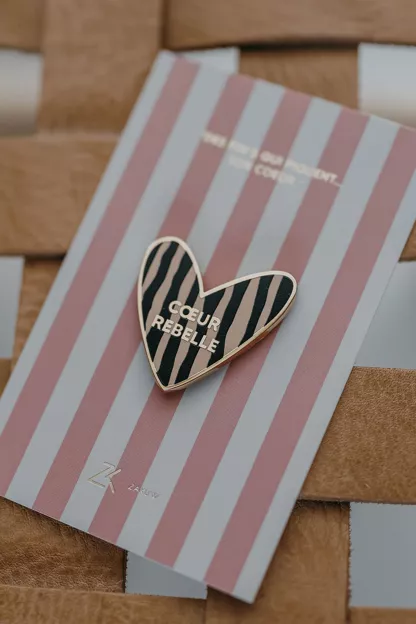 Notre pin’s sera le petit bijou à épingler qui affirmera votre style avec audace et tendresse. Ce pin’s en forme de cœur au motif affirmé, est rehaussé de l’inscription dorée « Cœur Rebelle ». Parfait pour personnaliser une veste, un sac, ou un tee-shirt. Il apporte une touche unique et résolument moderne à chaque look.