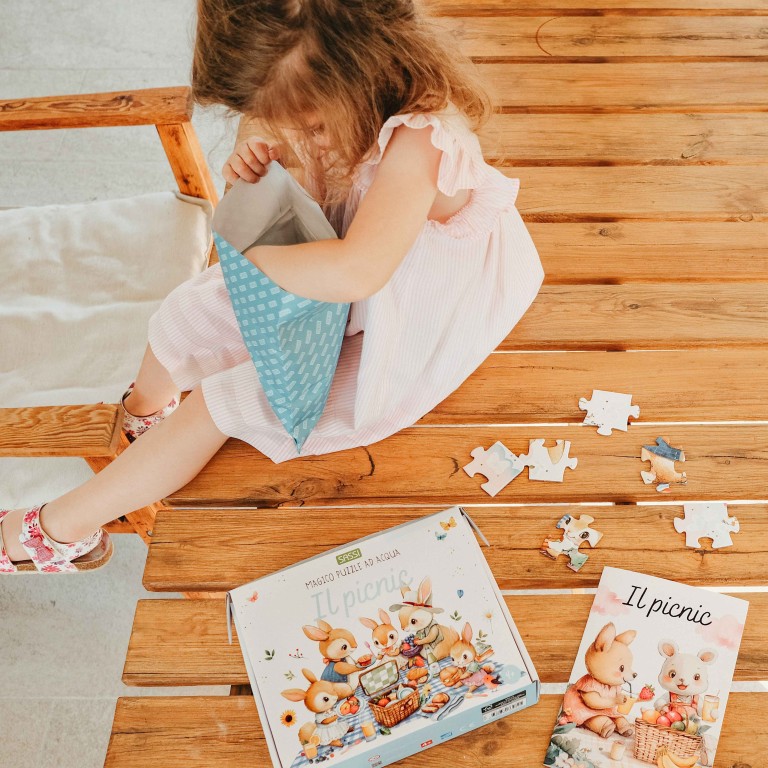 Comment organiser un merveilleux pique-nique ? Un puzzle magique rempli de détails à colorier avec de l’eau et un livre aux illustrations délicieuses te feront découvrir tous les secrets pour préparer une sortie inoubliable ! Une boîte contenant un puzzle de 54 pièces à colorier avec de l’eau et un livret de 16 pages.