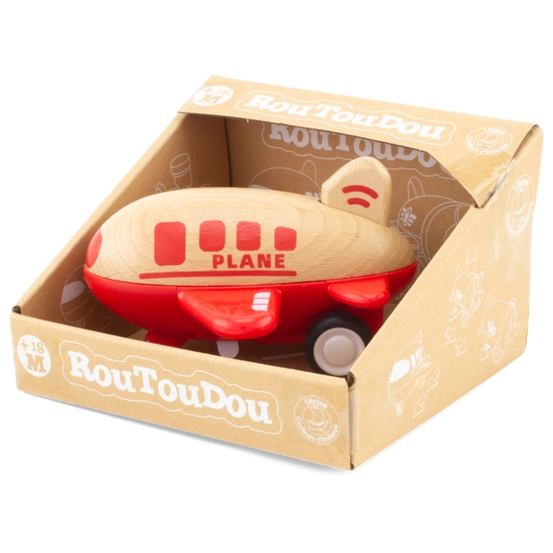 Gamme « Routoudou » : Avion de ligne en bois et plastique aux formes douces et arrondies, idéal pour les petites mains. Fonction à friction : Lancez le véhicule en le frottant au sol et regardez-le avancer tout seul ! Interactivité : Appuyez sur l’avion pour déclencher un vrai son de décollage, pour un effet « waouh » garanti.